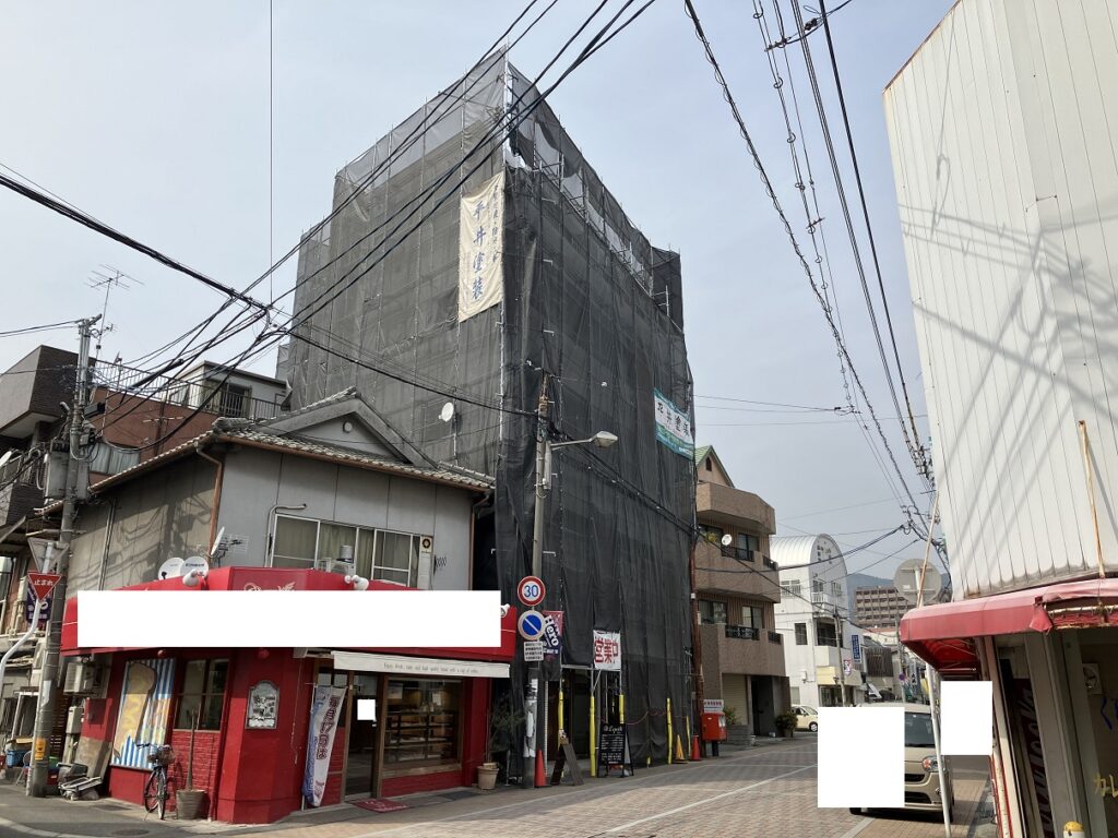 地元のビルの塗り替えを行っています。