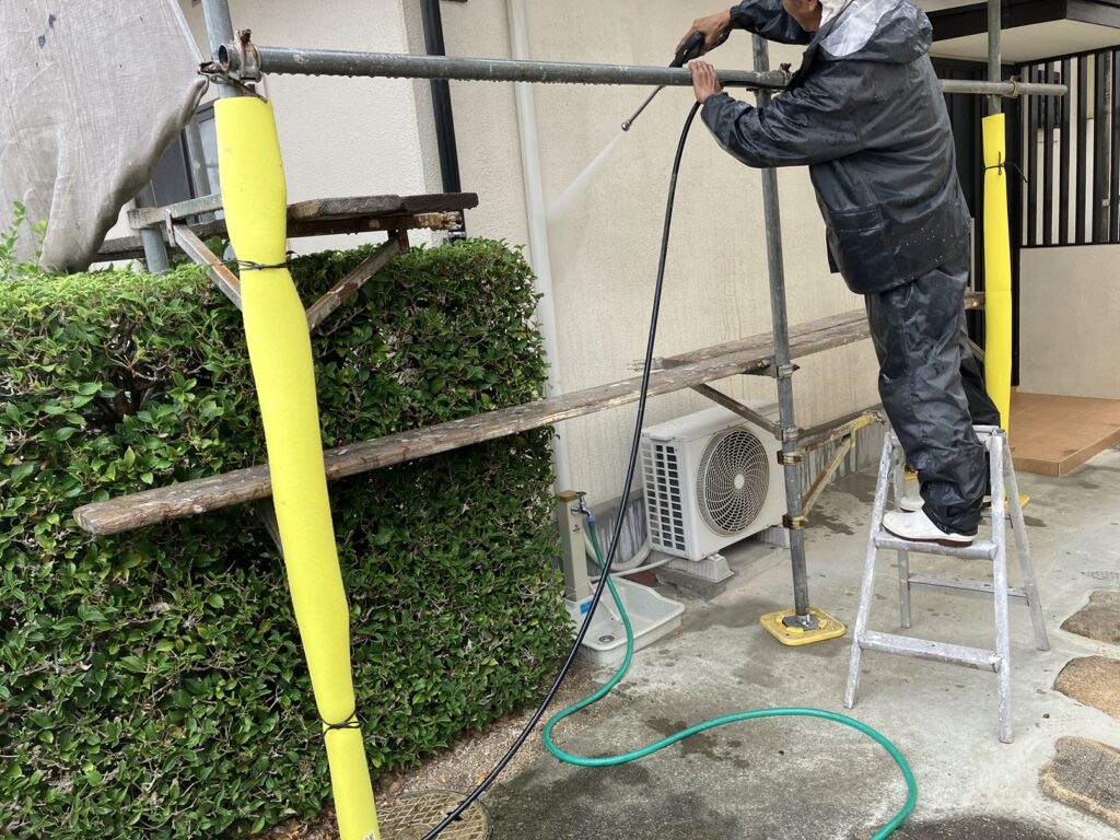旧塗膜が単層弾性マスチック仕上げでしたので、この度は下地を生かして塗るだけの仕様で綺麗になります。
